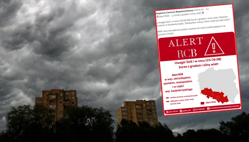 "Burze z gradem i silny wiatr". Wydano alert RCB